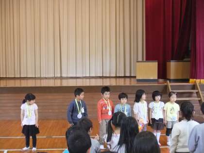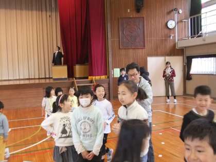 4月18日今日の児童集会は「1年生を迎える会」でした。1年生の皆さんの紹介とみんなで「じゃんけん列車」をしました。先生方も入って行いました。とっても楽しそうでした。