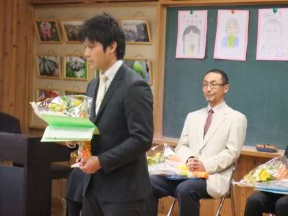 昨日、4月19日は、離任式でした。全部で8名の先生方、主事さんが退職あるいは転任されたのですが、ご家庭の事情や仕事の関係で4名の先生方が離任式に来られました。