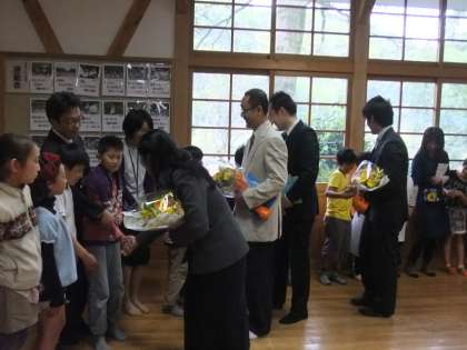 昨日、4月19日は、離任式でした。全部で8名の先生方、主事さんが退職あるいは転任されたのですが、ご家庭の事情や仕事の関係で4名の先生方が離任式に来られました。