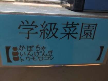 6年生の教室では学級菜園を行っています。かぼちゃ、とうもろこし、インゲン豆を種から植えて苗になったら、畑に植えるそうです。