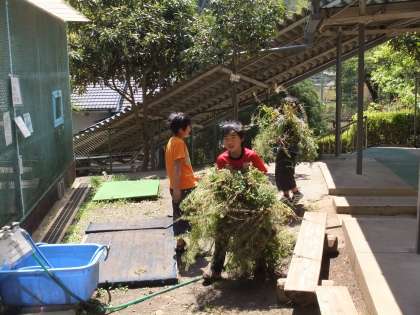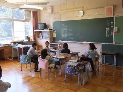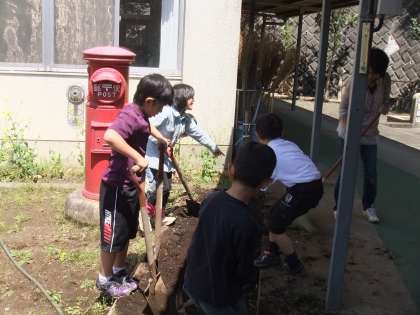 今日の授業の様子です。今日は、ALTの日でした。外国語の学習の様子は後ほど紹介いします。1年生は先生が絵本の読み聞かせの場面、2年生は漢字の学習、4年生は理科、5年生は学級活動、3年生は畑の整備をしていました。