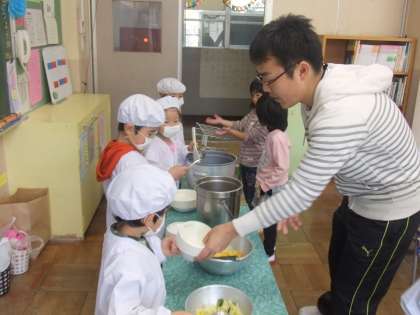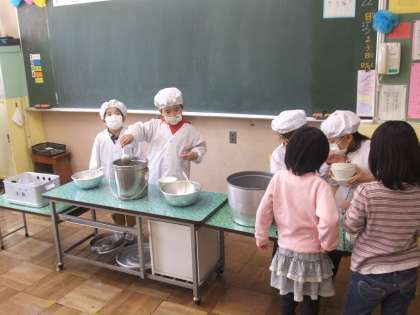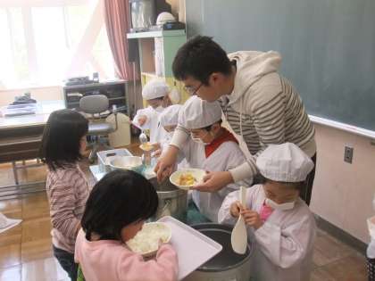 1年生は給食が始まってから今日で3日目。とても上手に先生と配膳をしていました。「恩二小の給食は美味しいですか?」と聞くと、「とってもおいしい」という答えが返ってきました。すごくうれしいですね。今日はカレーでしたので、みんなモリモリ食べていました!