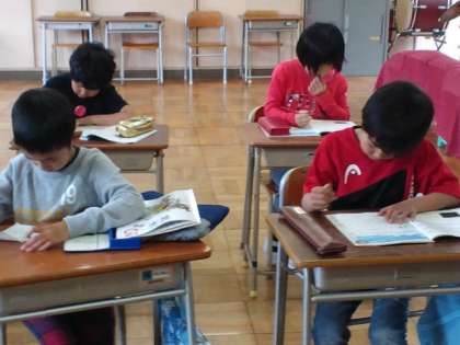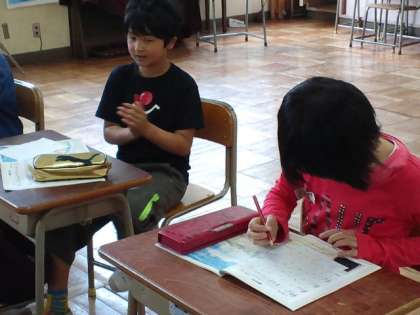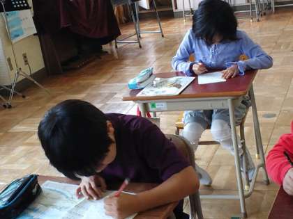 今日の授業の様子は・・算数、学級会、体育、総合的な学習の時間、音楽、図工の時間でした。テストをやっていた学年もありました。