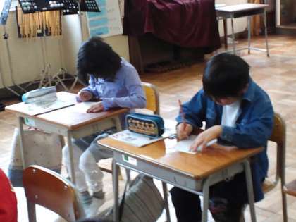 今日の授業の様子は・・算数、学級会、体育、総合的な学習の時間、音楽、図工の時間でした。テストをやっていた学年もありました。