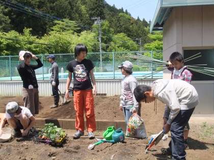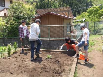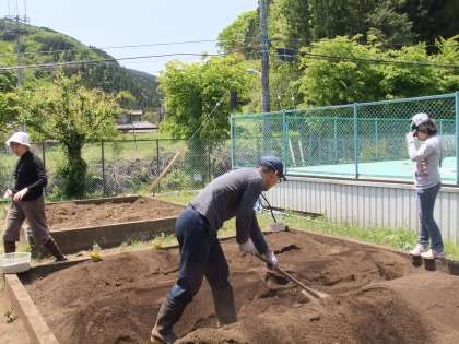 学校の畑を耕す