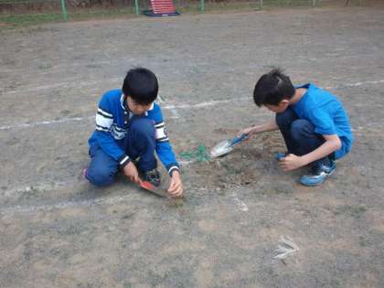 昨日の集会は、全校で草取りをしました。