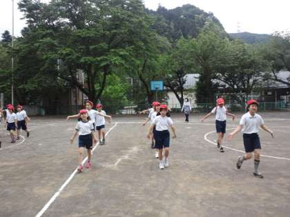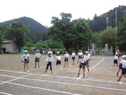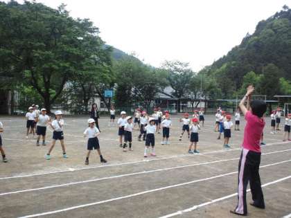 今日から全校練習が始まりました。今日は、開会式の並び方、入場行進、運動会の歌、ラジオ体操、全校ダンスの練習をしました。