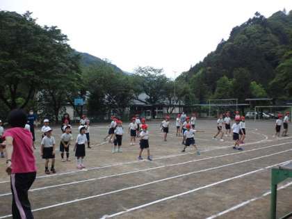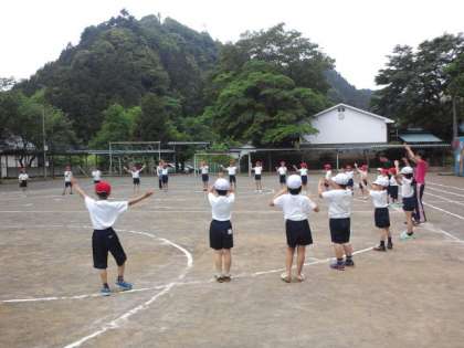 今日から全校練習が始まりました。今日は、開会式の並び方、入場行進、運動会の歌、ラジオ体操、全校ダンスの練習をしました。