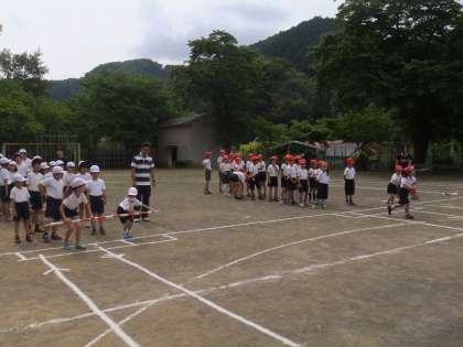 今日の全校練習では、入場行進、開会式、応援合戦の並び方、全校競技「恩二小タイフーン」を行いました。恩二小の子供たちは一生懸命練習に取り組む子供たちばかりです。素晴らしいです。