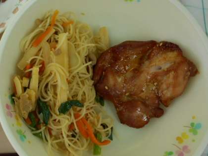 こんがりと良い色に焼きました。鶏肉のバンバンジー焼きです。