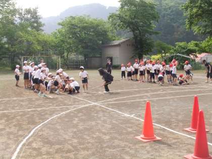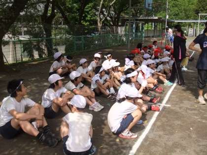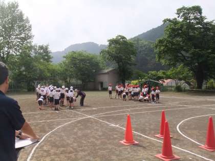 昨日の全校練習は、全校競技恩二小タイフーン、児童席の並び方、応援合戦でした。