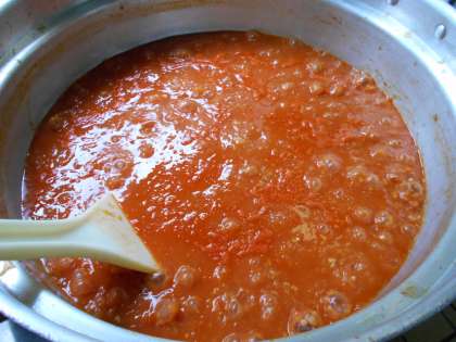 よーく煮込んだミートソース、子供達には大好評で今日もたくさん