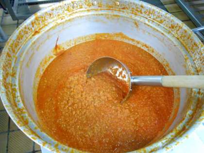 朝からたくさんの玉ねぎや人参などをみじん切りにし、大きな鍋で