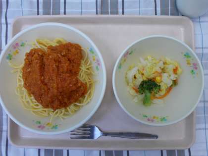 今日は給食で大人気のミートソースの日です。