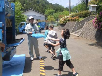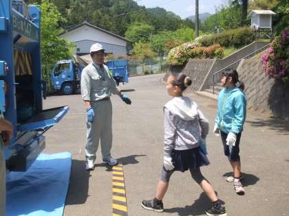 先週、4年生がごみの学習をしました。戸吹の清掃工場の方々が来ていろいろ説明してくださいました。