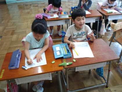 今日は給食管理員の柳本さんが今日は一年生の教室で子供たちに豆の栄養などの勉強をしてから一年生がそら豆のさやむきをしました。観察カードもとてもよく書いていました。今日はその一部を紹介します。