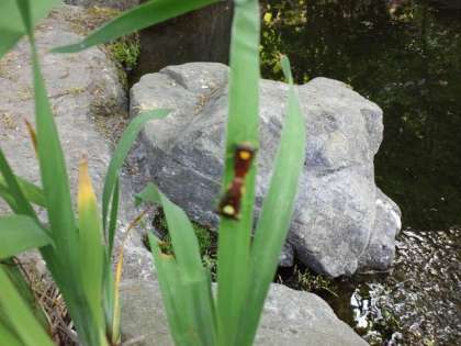 恩二小の池を見たら変わった色のかめむしを発見しました。真ん中にはハートマークがありましたよ。