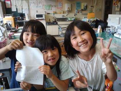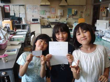 先生!給食時に私たちのクラスに来てくださいと招待状をもらいました。ありがとうございます。