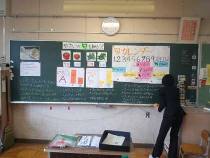 実習生のお二人は、木曜日と土曜日の2回食育の授業をしました。資料作り、指導案作りなど朝早く来てそして夜遅くまで残って一生懸命頑張っていました。