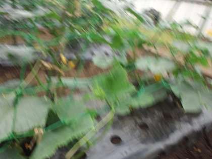 最近の畑の様子です。きゅうりは何本か収穫できました。ミニトマトはまだ緑色です。