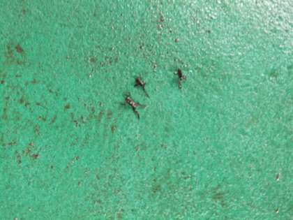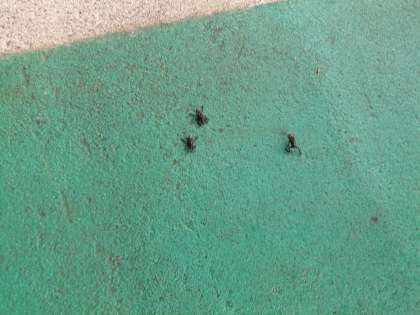 さらに拡大しましたが、拡大してもかなり小さいものです。正解はカエルです。池で卵からオタマジャクシになり、カエルになり大量に池にいました。そのカエルたちが山に帰っていく姿です。なぜ、今日の日を選んだと思いますか?今日は一日中雨です。それがヒントです。カエルが移動しているこの写真は校舎から視聴覚室に行く渡り廊下や階段にいました。子供たちは踏まないようにそっと廊下を歩いていました。さすが、恩方第二小学校の子供たちです。