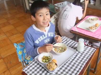 今日の給食時間の様子です。今日は、3年生が社会科見学で学校にいませんでしたので、3年生は写っていません。3年生の社会科見学の様子は後日紹介します。