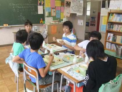 今日の給食時間の様子です。今日は、3年生が社会科見学で学校にいませんでしたので、3年生は写っていません。3年生の社会科見学の様子は後日紹介します。