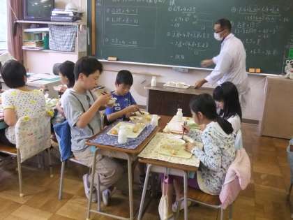 今日の給食時間の様子です。今日は、3年生が社会科見学で学校にいませんでしたので、3年生は写っていません。3年生の社会科見学の様子は後日紹介します。