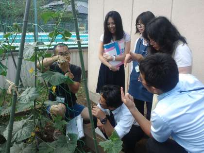 先生は恩二小の畑、水田の土を一度全部外に出し、その土をすべてふるいにかけてごみや石を取り出し、肥料を混ぜまた、畑と田に戻してくれました。時には夜8時過ぎまで、時には土曜日や日曜日に来て作業をしてここまでの畑と田にしてくれました。そのおかげで今年度の野菜の伸びや元気さがまったく違い、すでに毎日きゅうりが収穫できています。