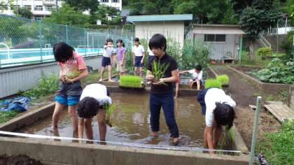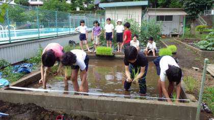 今週の月曜日に5年生が田植えをしました。みんな一生懸命田植えをしていました。