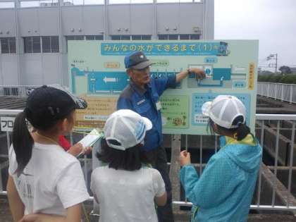 火曜日は、四年生の社会科見学でした。小河内ダムの次にむかったのは、小作浄水場です。浄水場の仕組み、役割を学習しました。