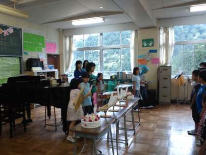 先週の木曜日にお誕生日集会がありました。今回は6・7月生まれの人の誕生日会でした。その様子を紹介します。