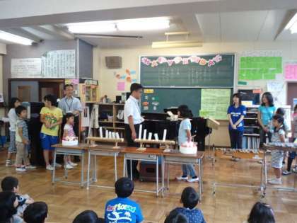 先週の木曜日にお誕生日集会がありました。今回は6・7月生まれの人の誕生日会でした。その様子を紹介します。