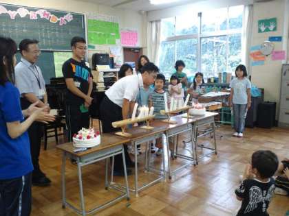 先週の木曜日にお誕生日集会がありました。今回は6・7月生まれの人の誕生日会でした。その様子を紹介します。