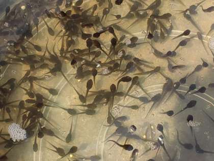 ようやく恩二小の池の木の上にモリアオガエルが卵を産むようになりました。今までは、プールやビオトープ等でしか見かけませんでした。プールに産んだ卵は子供たちがとってオタマジャクシになるまで飼って、その後池に放しています。