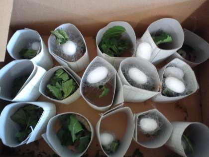 3年生が飼っている「カイコ」がついにまゆをつくり始めました。