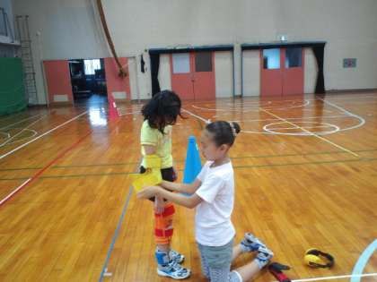 火曜日に、4年生は、高齢者疑似体験と車椅子体験をしました。そのあと、杉浦さんのお話を聞きました。