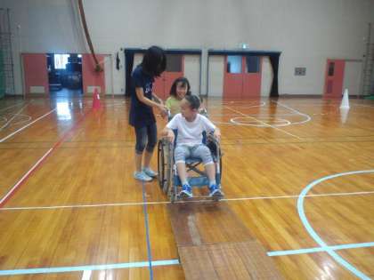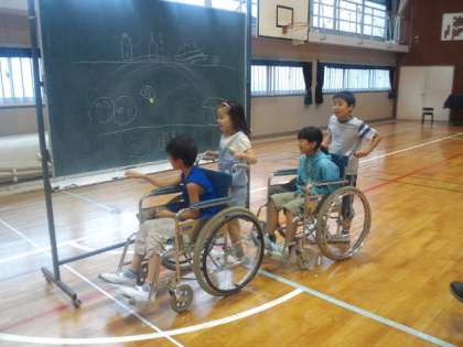 火曜日に、4年生は、高齢者疑似体験と車椅子体験をしました。そのあと、杉浦さんのお話を聞きました。