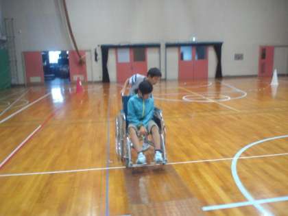 火曜日に、4年生は、高齢者疑似体験と車椅子体験をしました。そのあと、杉浦さんのお話を聞きました。