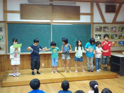 来週の火曜日にロングの集会活動があります。今年度は1学期に「恩二小モール」を行います。各クラスごと楽しいお店屋さんを出してくれます。その紹介集会の時の様子です。紹介集会あと、図書委員会の委員長さんから、夏休みの図書の貸し出しについてお話がありました。