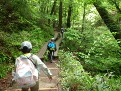 日光移動教室の2日目は、朝、湯の湖で朝の会、そして、戦場ヶ原ハイキングコースを追跡ハイキングをしました。そのあと、光徳牧場でアイスクリームを食べ、中禅寺湖畔のレストランでご飯を食べ、遊覧船にのり中禅寺湖周辺の散策をしました。