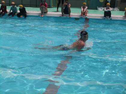 今日は、着衣泳を予定通り行いました。今年度はスポーツジムのメガロス八王子より3名の水泳のインストラクターの方に来ていたただき、指導していただきました。インストラクターの方の中に、あの北島康介選手と一緒に練習をし、実際に北島選手に次ぐタイムを持っている山下コーチにも来ていただきました。着衣泳が終ったあと、山下コーチに平泳ぎで100m泳いでいただき、そのあと、北館コーチに個人メドレーを泳いでいただきました。全体を指導していただいたのは秋葉コーチです。手本の泳ぎを見たあとは、子供たちが泳ぎ、その泳ぎを指導していただきました。水泳の後は、5年生の教室で給食も食べていただき、子供たちと交流を深めました。