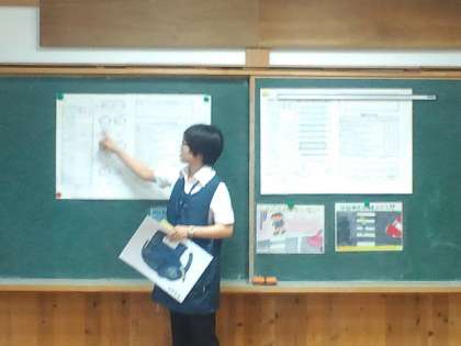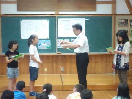 全校朝会では、昨年度の3年生の交通安全ポスターの表彰、養護の先生から健康カードの記入の仕方の話がありました。また、全校で、「ストップ!いじめ」のDVDを見て、いじめについて考えました。