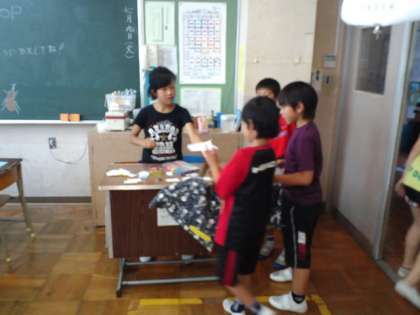 先週の火曜日に恩二小モールと言って、児童会主催のロング集会がありました。各がん九年ごとに工夫を凝らした、お店を開いていました。