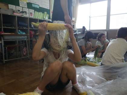 トウモロコシの皮むきその7