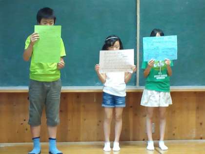 次に、保健委員会から、夏休みの取り組みを発表してもらいました。