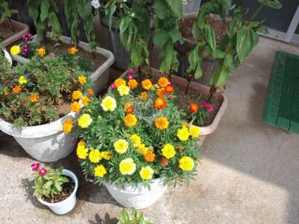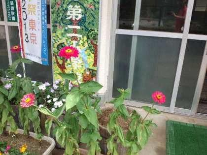 昇降口のお花〜用務主事さんが植えてくれました〜