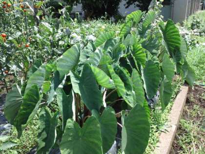 恩二小の畑には茄子、きゅうり、さといも、ミニトマト、かぼちゃが植えてあります。