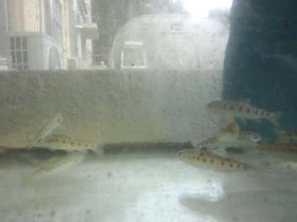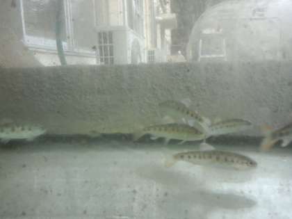 ヤマメたちは沢水のかけ流しの水槽で暮らしているのでとても元気です。ヤマメの模様もはっきりしていているし、全体の色もついてきています。