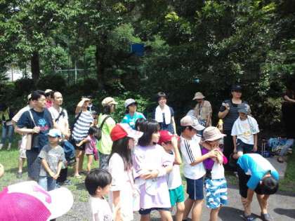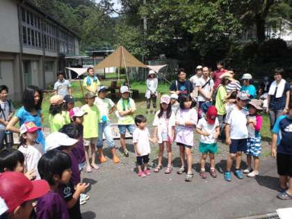 7月21日日曜日本校のPTA夏行事を行いました。今年度は一昨年度行った「ヤマメのつかみ取り」を行いました。たくさんの子供達、保護者の方、そして恩一小のPTA役員の方も見にきてくれました。学校の前の醍醐川にニジマスを放流し、子供たちがそのニジマスをつかみ取り、塩焼きにして食べました。ヤマメの塩焼きの串は、本校のゲストティーチャーの竹細工・わら細工を指導してくださっている岡本さんが作ってくださいました。